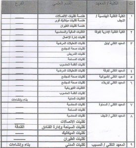 الاقسام والفروع العلمية المسائية في كليات ومعهاد الجامعة للسنة 2018- 2019