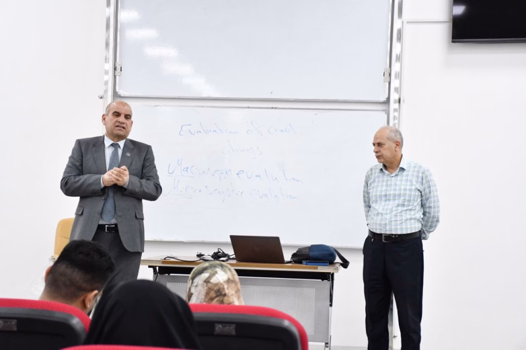 كما قدّم الأستاذ محمد حميد جعفر مدير قسم التسجيل وشؤون الطلبة عرضًا تناول فيه أهم الجوانب المتعلقة بـ قانون انضباط الطلبة وضرورة الالتزام بالسلوك الجامعي القويم الذي يعكس الصورة الحضارية للجامعة.