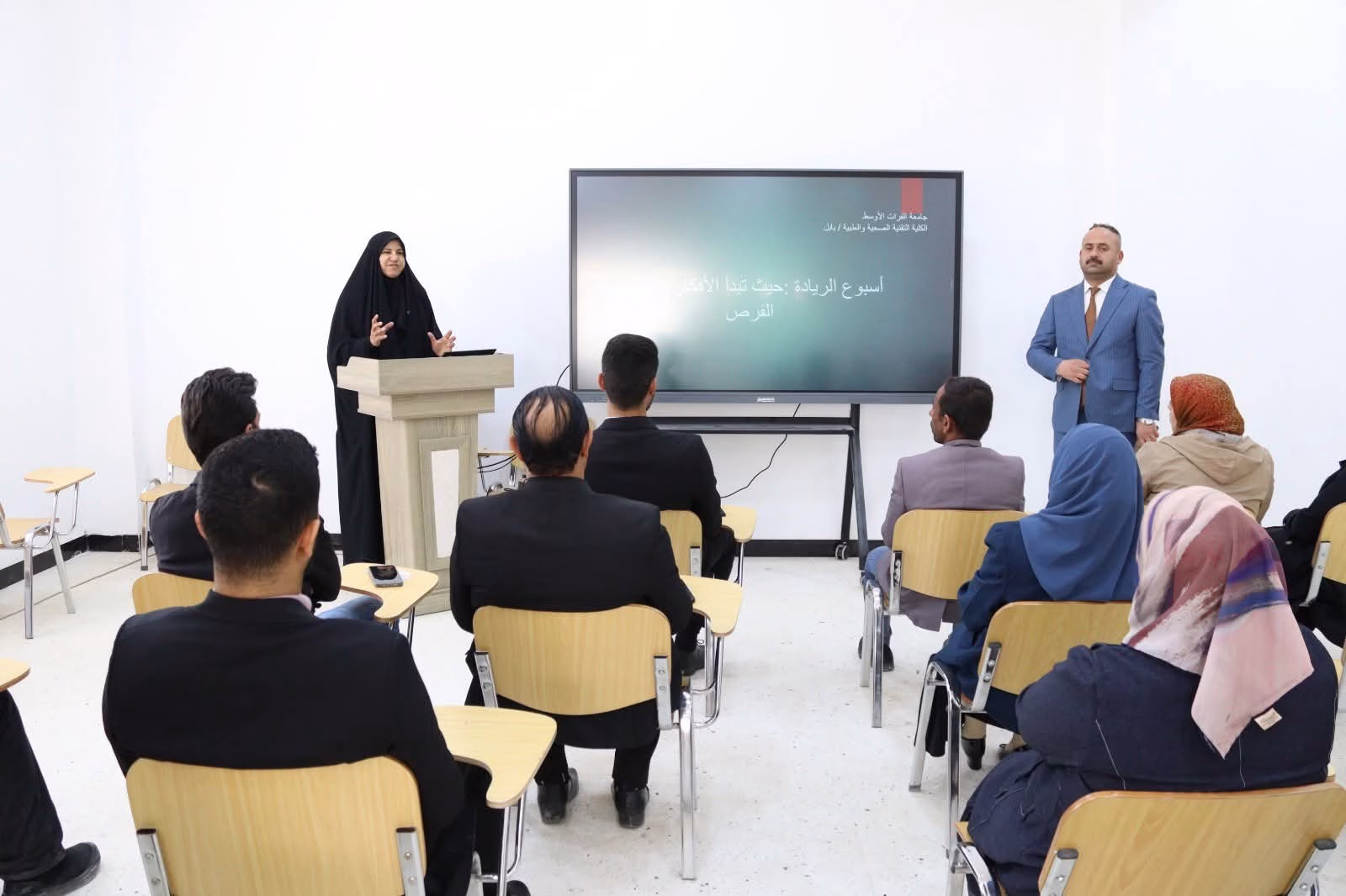 جامعة الفرات الأوسط التقنية تنظّم ندوة علمية لتعزي... نظمت الكلية التقنية الصحية والطبية بابل بجامعة الفرات الأوسط التقنية ندوة علمية بعنوان (أسبوع الريادة: حيث تبدأ الأفكار وتُصنع الفرص)، بهدف تعزيز ثقافة الابتكار...