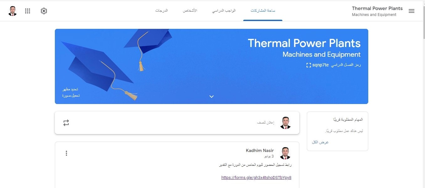جامعة الفرات الاوسط التقنية تقيم دورة محطات الطاقة... اقيمت الكلية التقنية المسيب وحدة التعليم المستمر بجامعة الفرات الاوسط التقنية دورة الكترونية حول محطات الطاقة الحرارية والتي استمرت خمسة ايام وعبر تطبيق Goog...