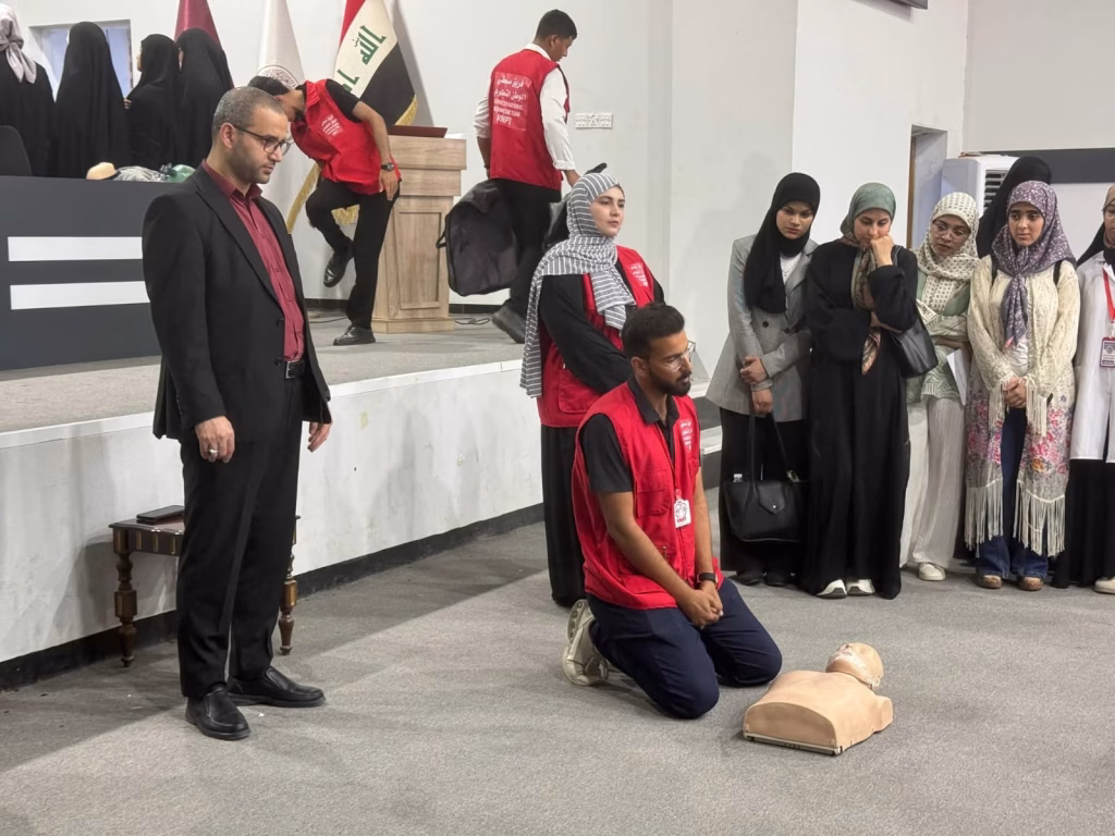 The sessions were delivered by Assistant Professor Dr. Rusul Arif Abdul Ali and Assistant Lecturer Noor Hadi Hassan, alongside the volunteer team Watan Paramedics, who presented specialized theoretical and practical modules in first aid and rapid response.