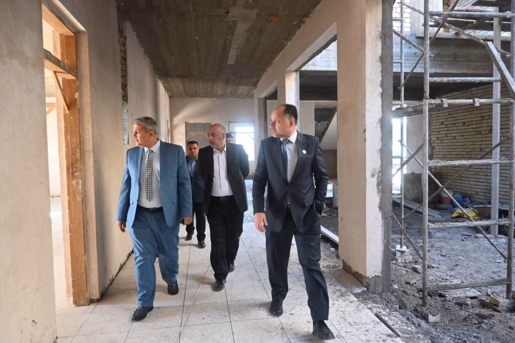 The President of Al-Furat Al-Awsat Technical University, Professor Dr. Hassan Latif Kadhim Al-Zubaidi, inspected—during a field visit to the building of the Higher Institute for Nanotechnology for Postgraduate Studies—the progress rates and ongoing work in the reconstruction and construction projects.